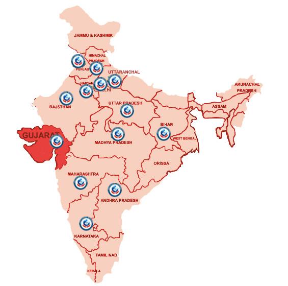 We have got our own offices in Ahmedabad, Delhi, Rajasthan and Uttar Pradesh and have network office through all over INDIA.